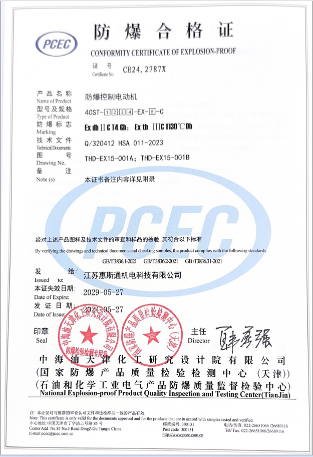 40基座ⅡCT4防爆控制電動機證書