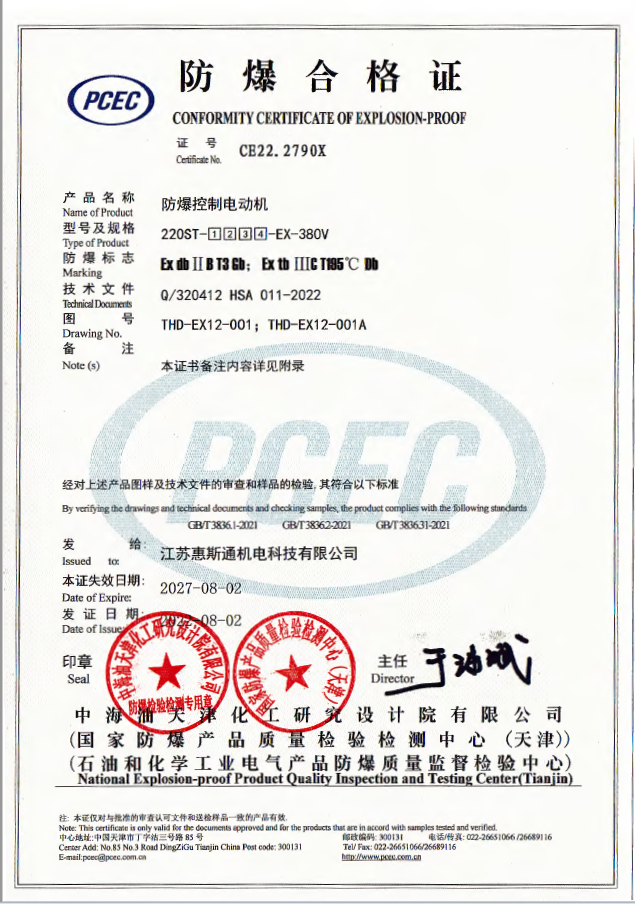 220基座ⅡBT3防爆控制電動機證書